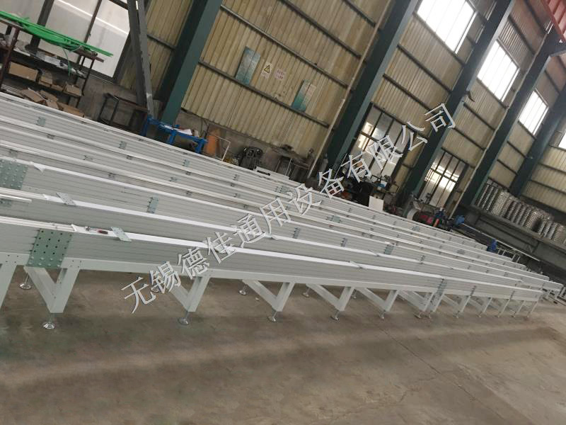 流水線運轉(zhuǎn)有:輸送機、皮帶輸送機、鏈板輸送機、爬坡輸送機以及伸縮輸送機等。
